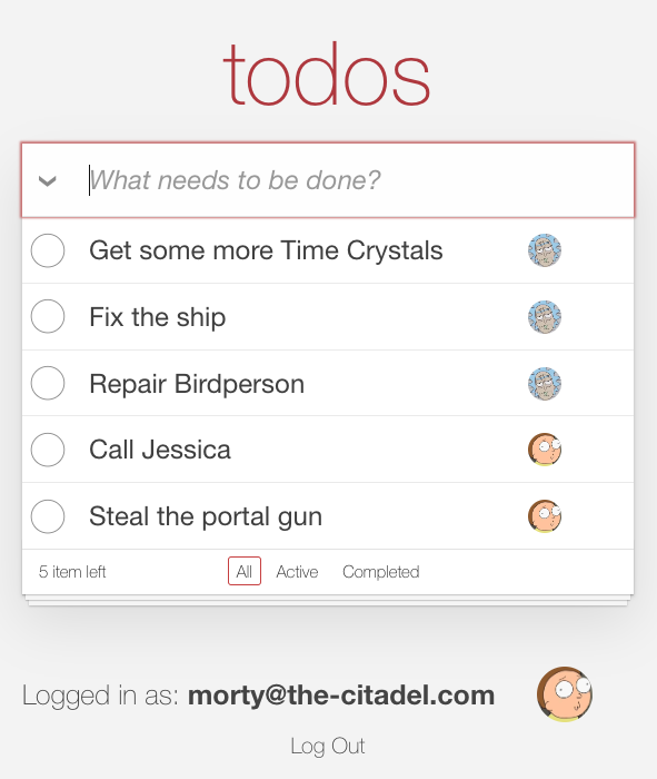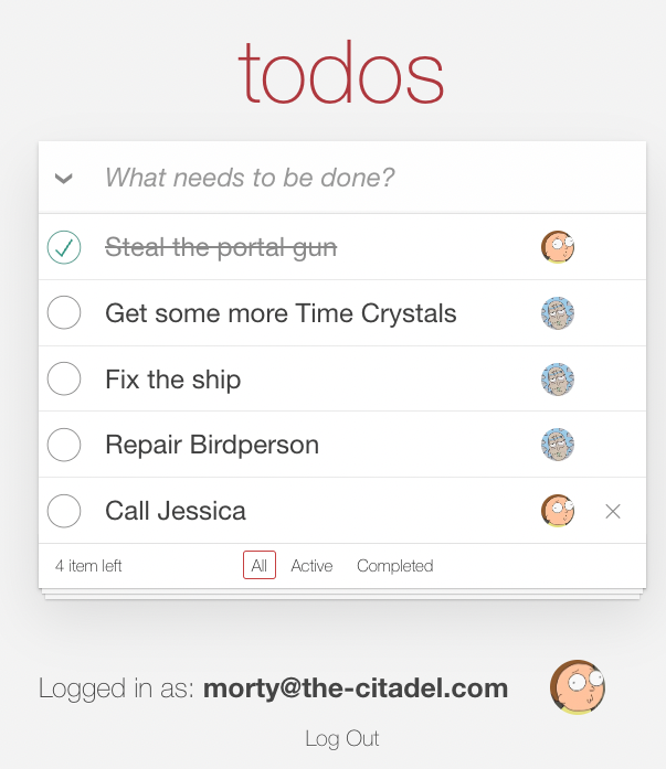 Since Morty is only an editor, he won't be able to delete a todo item he did not create. To test this, mark one of Morty's todo items as done: